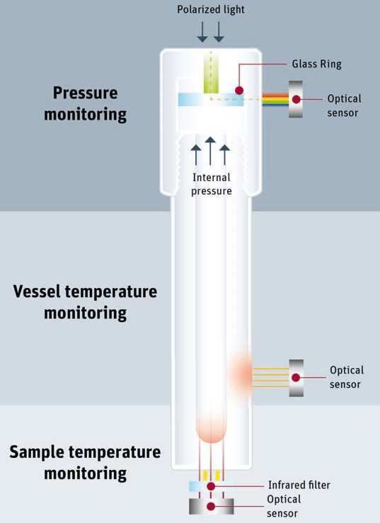La température de l’échantillon dépend, par exemple, du type d’échantillon et de sa prise d’essai. Pour réduire les risques liés à une chauffe irrégulière ou des réactions exothermiques spontanées, il est primordial de surveiller la température, mais aussi la pression.